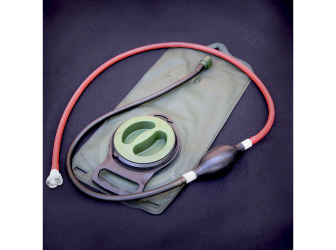 Blood Supply Pump. This simulated blood supply reservoir with a manual hand pump is designed to attach to any Techline Trauma wearable wound simulation, Wound in a Box ™, or partial task trainer.