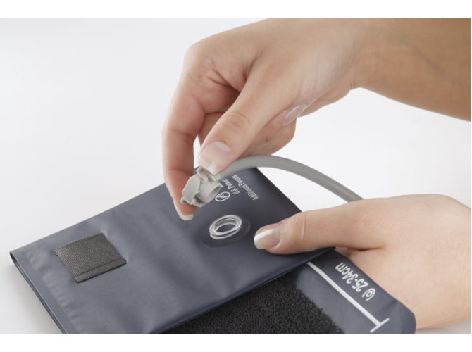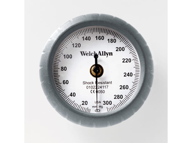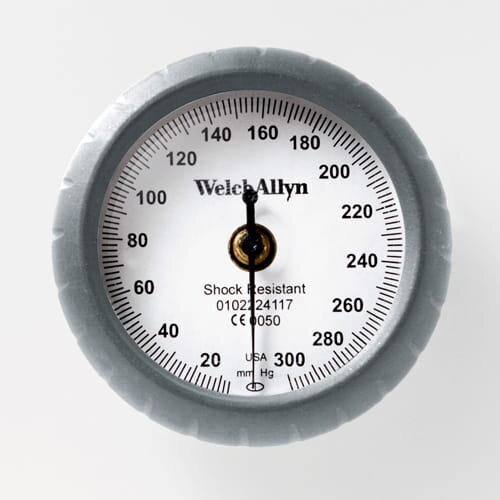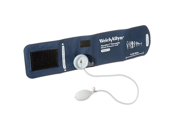 The DuraShock 44 is an exceptionally lightweight (70 g) and durable sphygmomanometer, resistant to shocks and the effects of drops (up to 76 cm without the need for calibration). The 360° rotatable gauge clips directly into the cuff for convenient operation. The measurement accuracy is guaranteed for 5 years, and the super durable cuff withstands over 100,000 measurements. Includes a standard cuff (No. 11, navy blue); other sizes are also available. This model is easy to clean, latex-free and inexpensive to operate.
