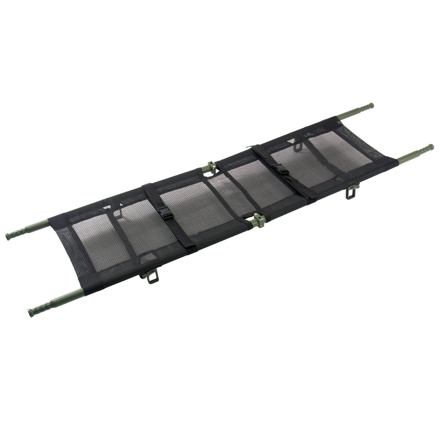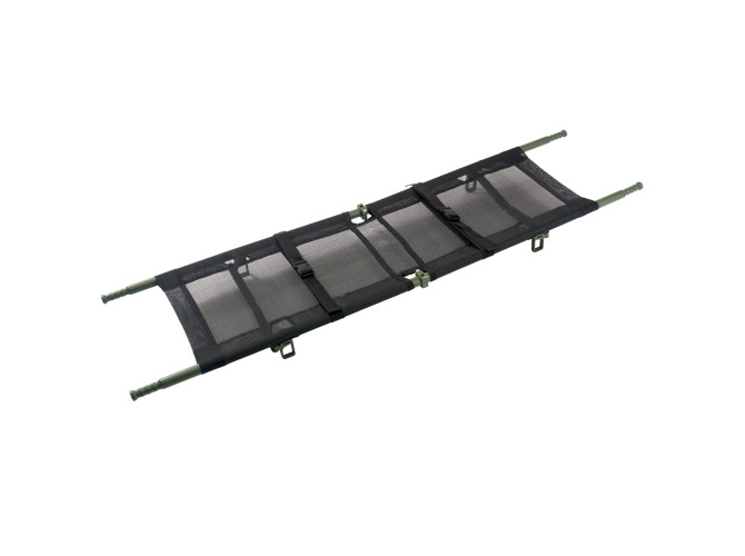 The Ferno 108-T model is a folding mesh stretcher designed for tactical use in environments contaminated by hazardous materials, in situations involving chemical, biological, nuclear, and radiological threats, in search and rescue operations, and during disasters. The stretcher features a strong and lightweight aluminum frame. The handles have a non-slip surface and are an integral part of the stretcher for structural reinforcement. The stretcher cover is made of durable, fire-resistant, non-slip polypropylene material that is resistant to mold and chemicals.