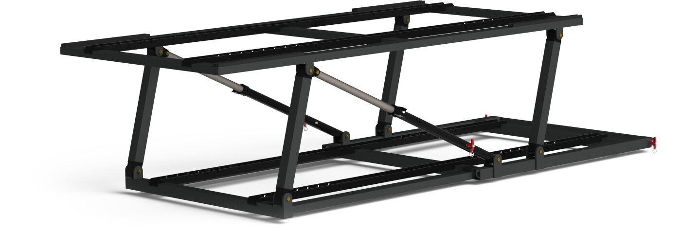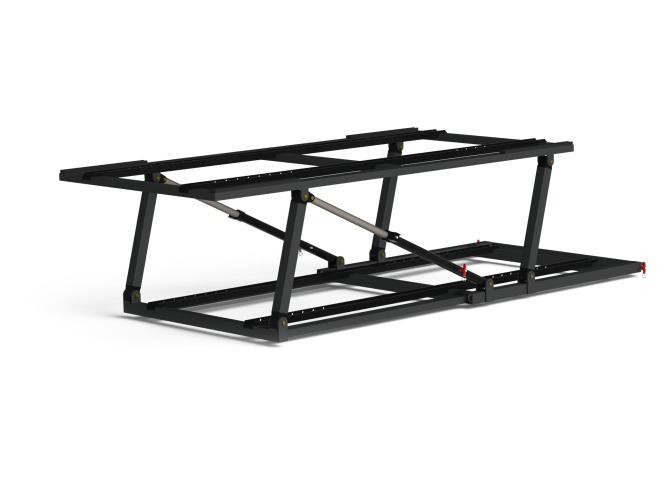 This frame is permanently mounted in vehicles as a transport base for NATO STANAG 2040 pole stretchers. Its unique design allows for immediate doubling of transport capacity by raising the upper part of the frame. This results in two places for lying patients without the need to change the vehicle's configuration. The low-profile design facilitates work in the vehicle without casualties on stretchers, thus increasing the vehicle's functionality.