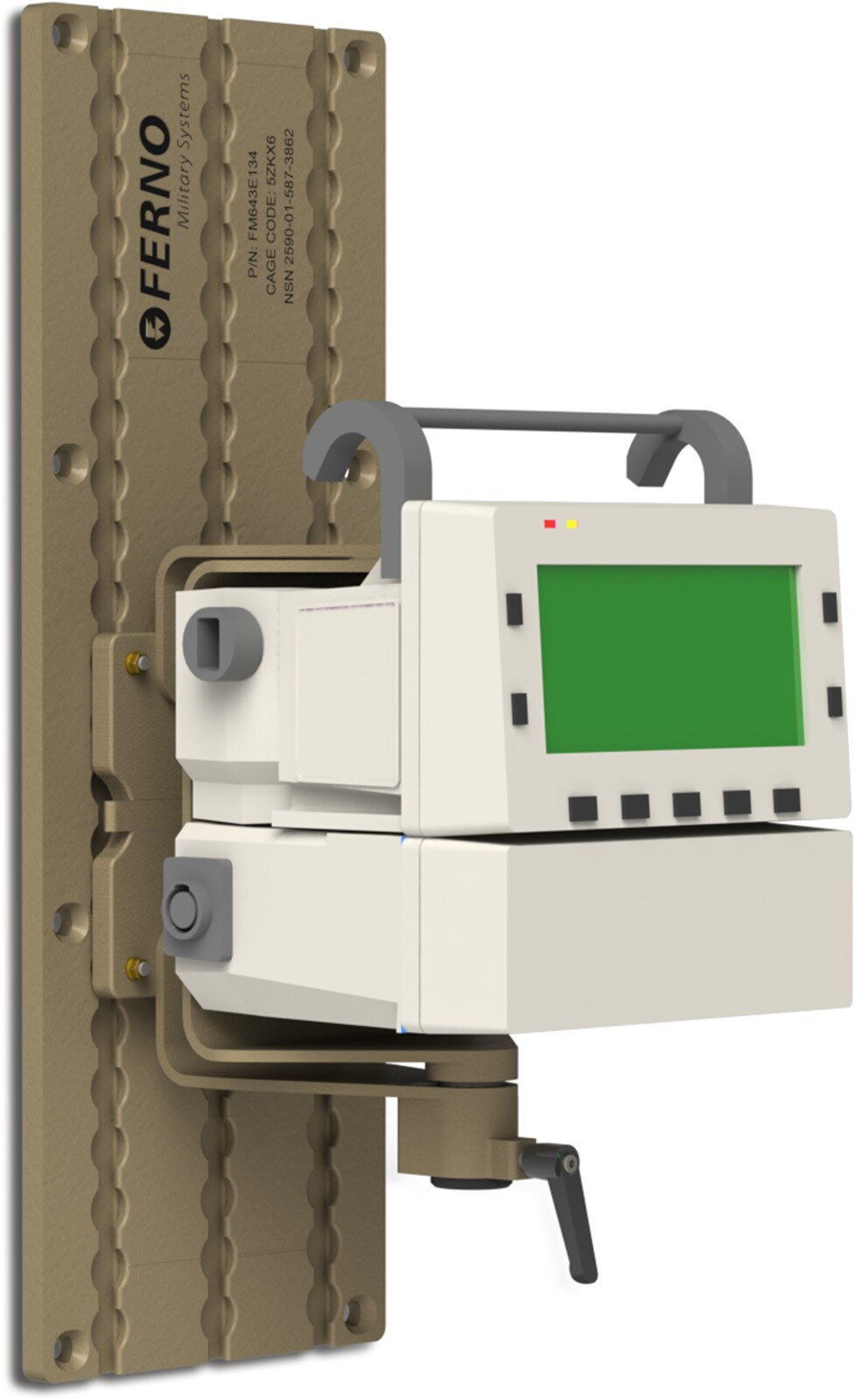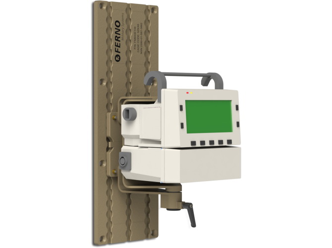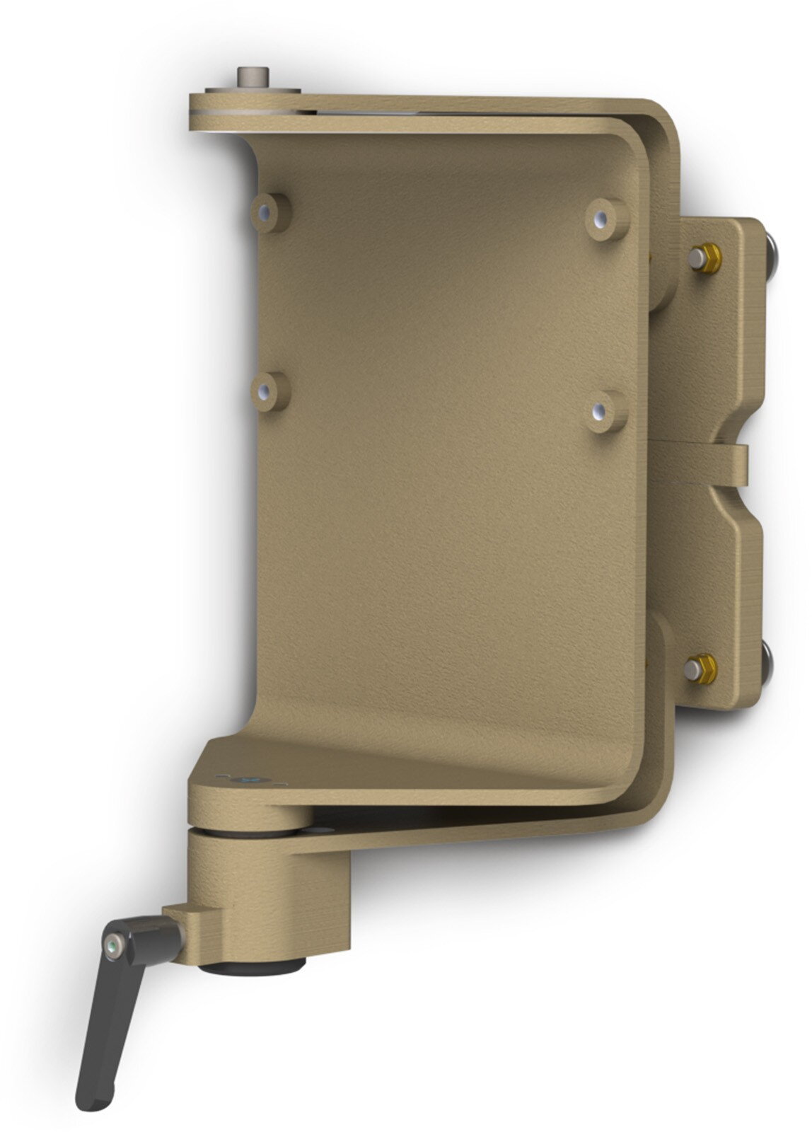 The system uses a standardized mount as a base, which is then attached directly to the rear panel of the cardiac monitor. The mount allows for 70° horizontal rotation.