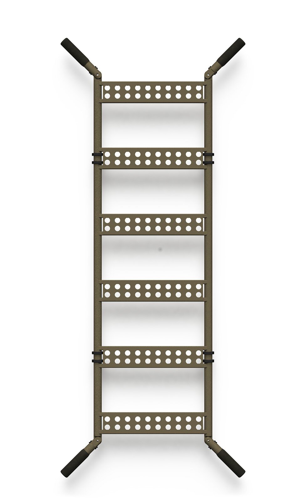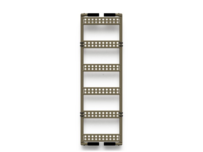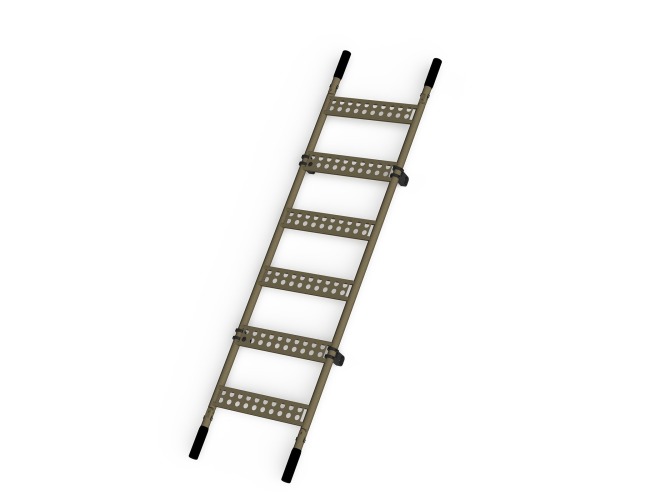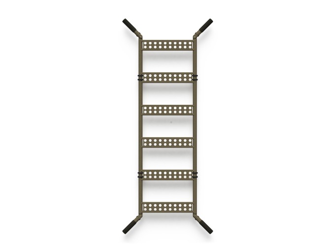 A unique design combining two functions: a tactical ladder and an evacuation platform (stretcher). Dimensions comply with the standard parameters of the NATO STANAG 2040 stretcher. The system includes a quick-release attachable base for a more secure ladder footing. The handles fold inwards for easy loading into vehicles, but also fold outwards to a 45° angle for easier carrying. Made of aviation aluminum.