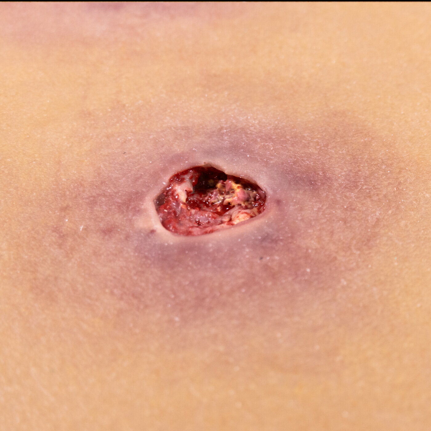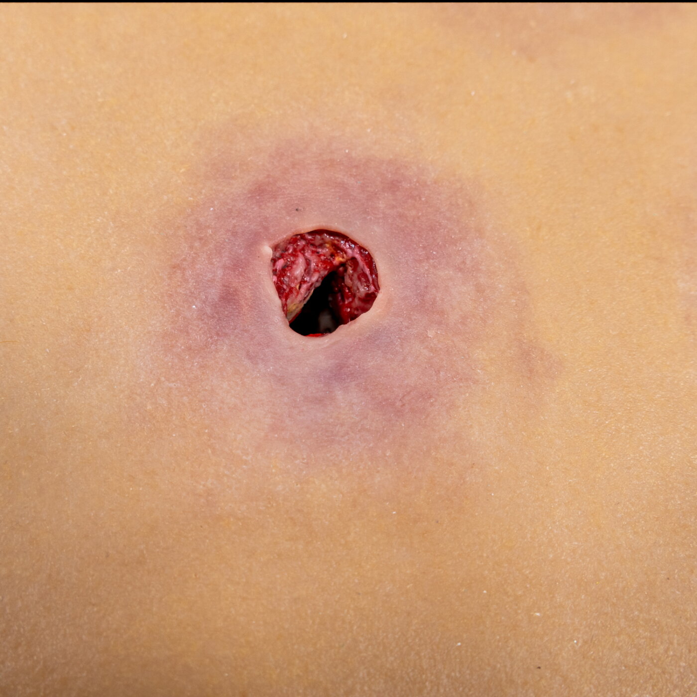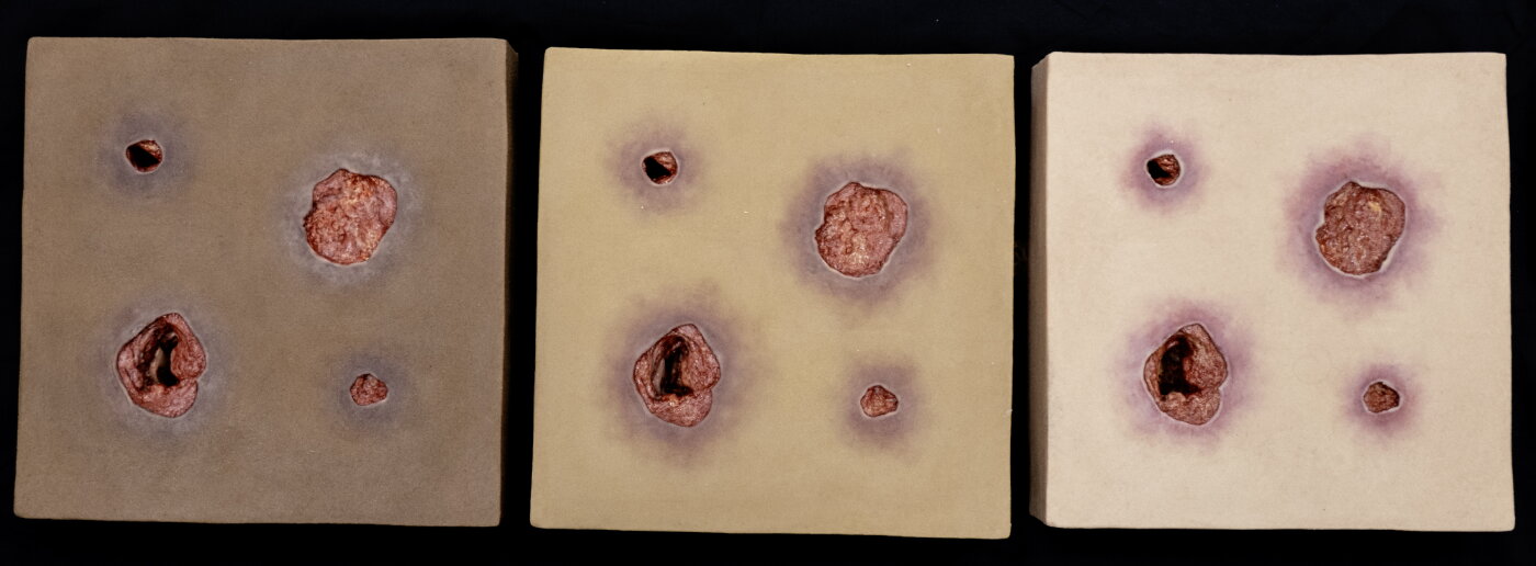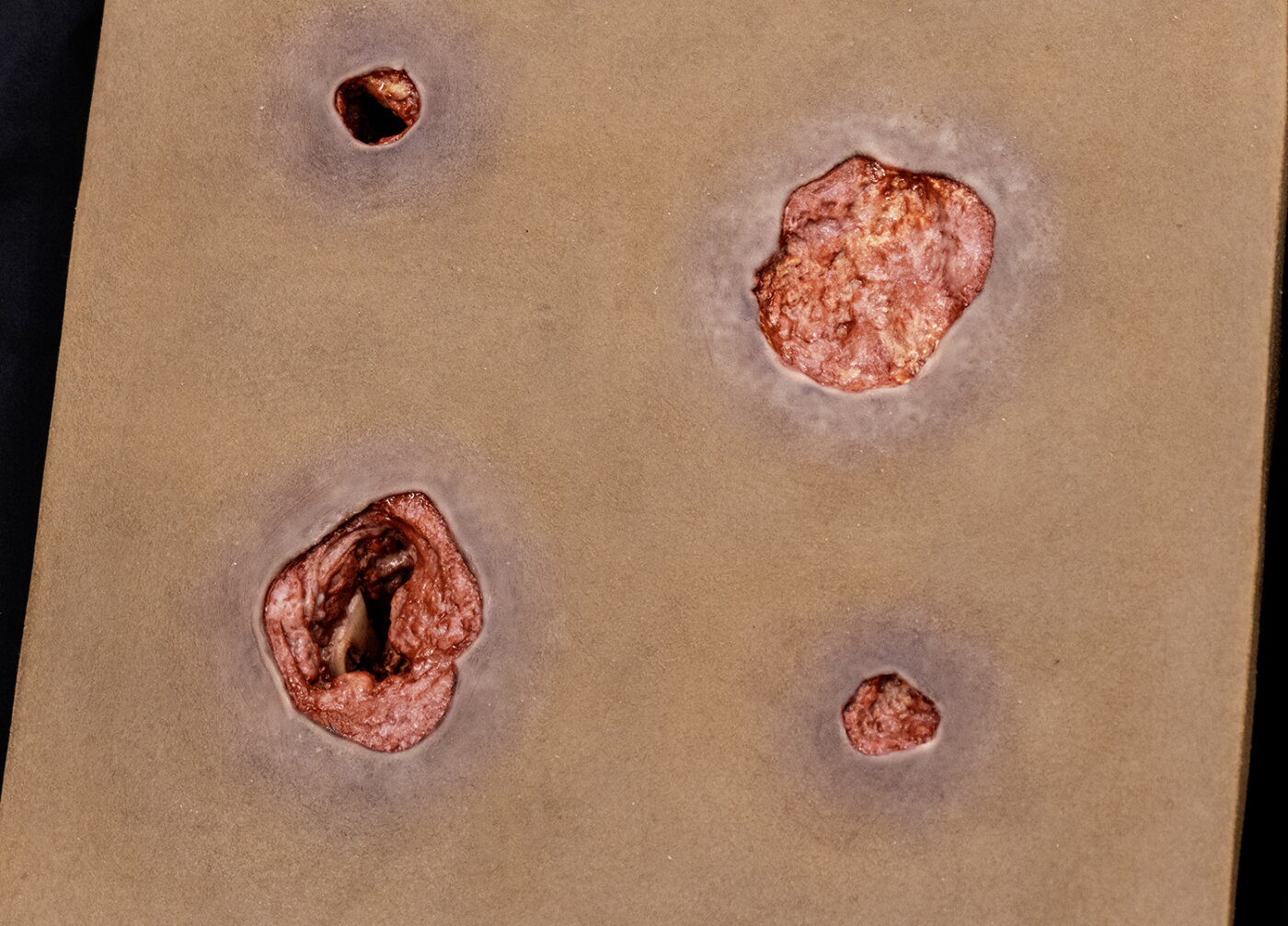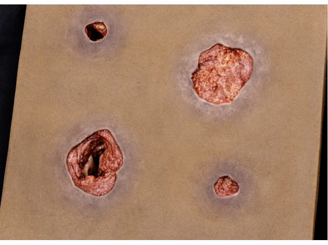 The training mat with 4 wounds consists of four different pressure ulcers that vary in diameter and depth, enabling the identification of individual stages and the selection of appropriate treatment options.