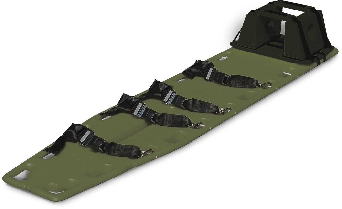Klasyczna deska ortopedyczna o szerokości 41 cm i długości 183 cm. Uchwyty nośne rozłożone na obwodzie deski. Kompatybilna z unieruchomieniami głowy typu klockowego i pasami zakończonymi karabinkami.