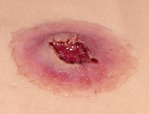 Rana postrzałowa wlotowa – duża, samoprzylepna.