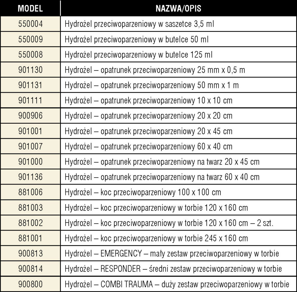 Opakowania opatrunków mogą być dodatkową barierą zabezpieczającą, wykorzystywaną do osłonięcia rany. W przypadku dłuższych transportów i wysychania hydrożelu, który w 93% składa się z wody, należy nawilżać opatrunek hydrożelem z butelek 60 ml lub 125 ml.
