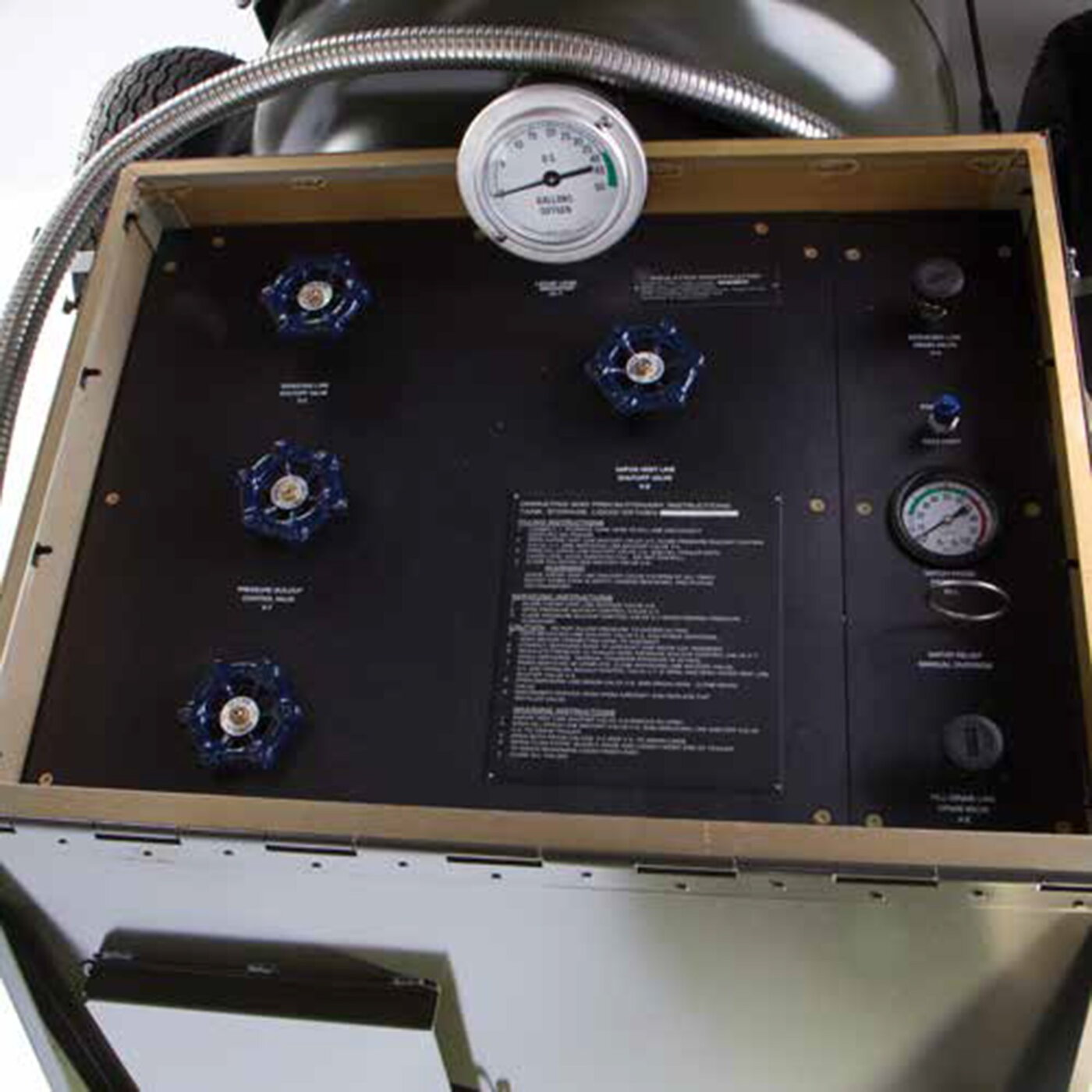 Transporter umożliwia podpięcie do wszystkich standardowych ciągników stosowanych na lotniskach. Skrętne przednie koło i hamulec ręczny umożliwiają holowanie, ale także pchanie ręczne. Służy jako źródło do napełniania wszystkich innych systemów LOX w standardzie CRU-50. Zgodny ze standardami MIL-PRF-38170 oraz MIL-STD-810.