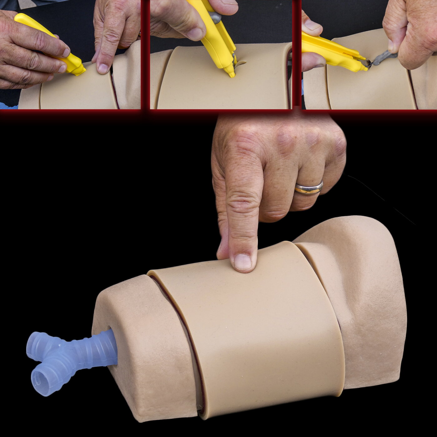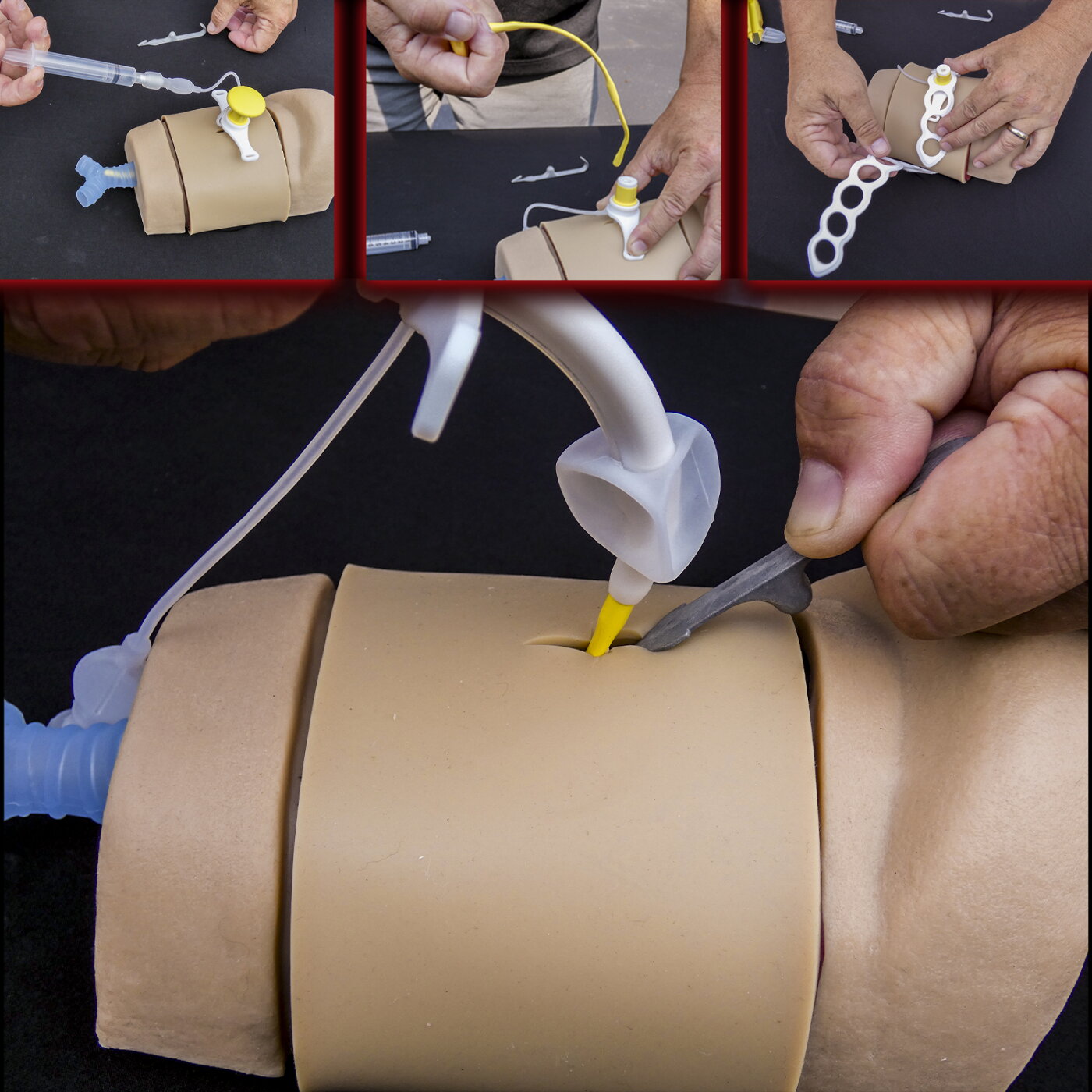Ten model umożliwia trenowanie techniki udrażniania dróg oddechowych- konikotomii. Jest wyposażony w symulowaną skórę i membrany, które pozwalają kursantowi ćwiczyć nacięcia chirurgiczne wymagane do udrożnienia dróg oddechowych w nagłych wypadkach.