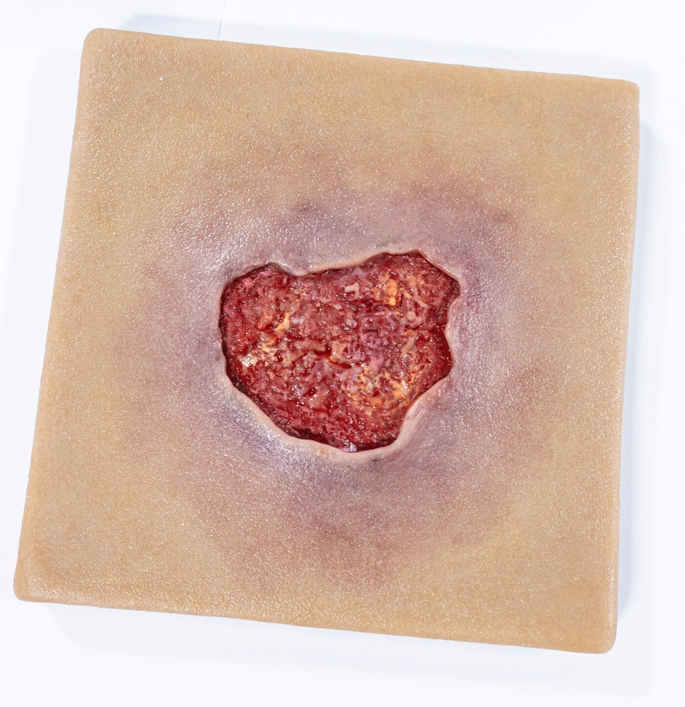 Treningowy model odleżyny stopnia III przedstawia trzeci etap rozwoju odleżyny.