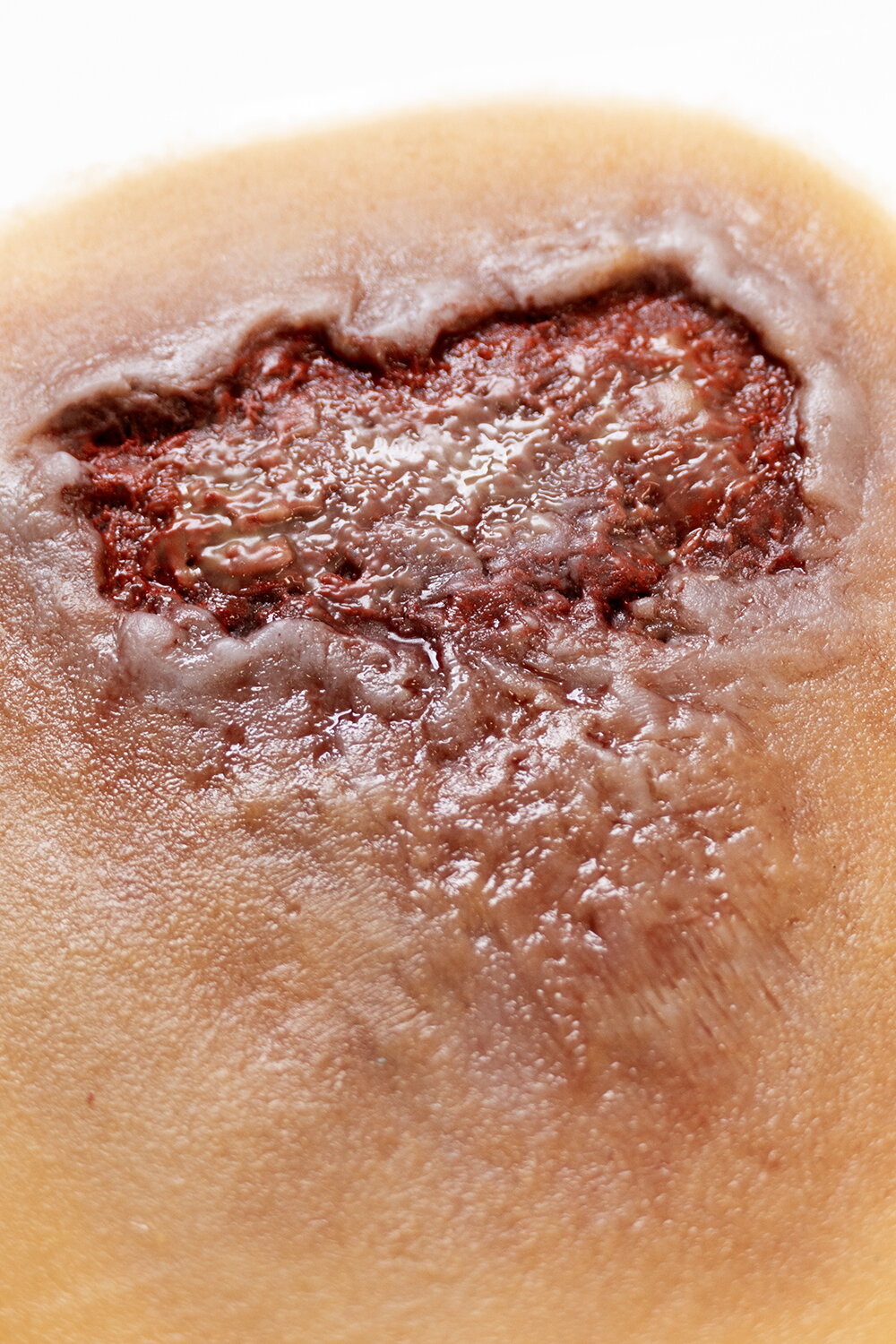 Owrzodzenia żylne mają postać płytkich, ale rozległych ran o nieregularnych brzegach.