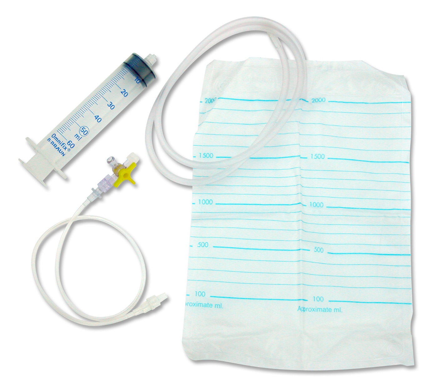 Prosty zestaw do odbarczania odmy opłucnowej z powietrza i płynów. Wyposażony w worek do zbiórki płynu z opłucnej.