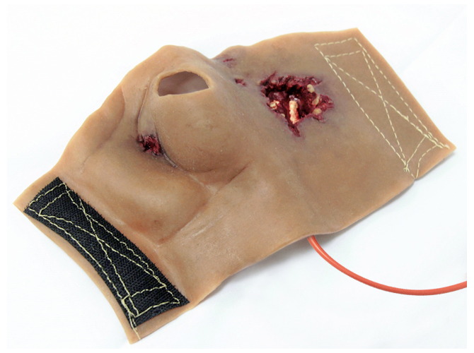 Łatwe mocowanie: Dzięki zapięciom na rzepy, symulacja może być szybko i bezpiecznie przymocowana do aktora lub manekina.