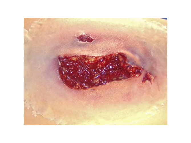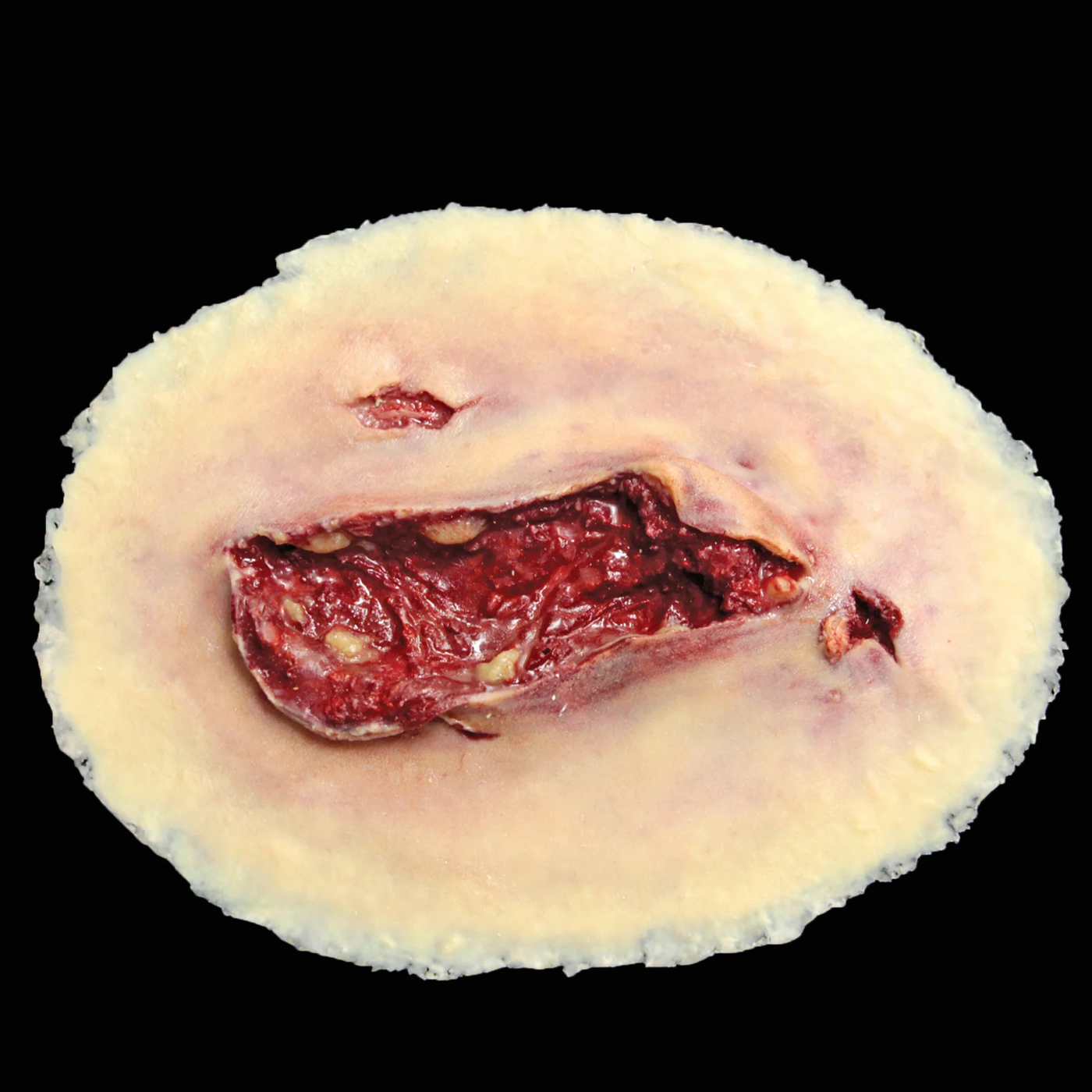 • Realistyczny wygląd i faktura: Wykonana z wysokiej jakości materiałów, które wiernie odwzorowują wygląd i dotyk prawdziwej rany.
