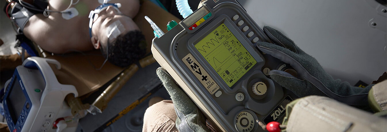 EMV+® to kompaktowy (4,4 kg), wytrzymały respirator transportowy przeznaczony do wentylacji niemowląt (≥5 kg), dzieci i dorosłych w transporcie lotniczym i karetkach.