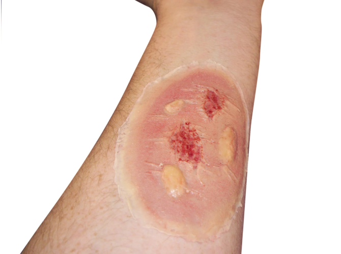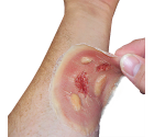 Oparzenie termiczne – rana średnia, samoprzylepna.