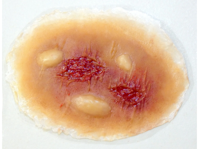 - Realistyczny wygląd i faktura: Wykonana z wysokiej jakości materiałów, które wiernie odwzorowują wygląd i dotyk prawdziwej rany.