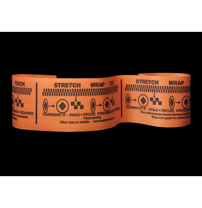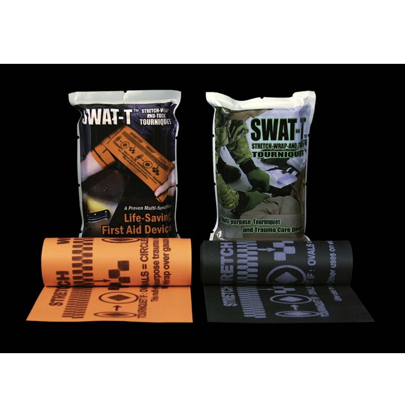 SWAT-T to niezwykle prosta, wielofunkcyjna taśma elastyczna, która działa zarówno jako staza i opatrunek uciskowy, który można zastosować zarówno u dorosłych, u dzieci, ale także na zwierzętach! Zakładanie opaski SWAT-T jest proste i intuicyjne, wystarczy rozciągnąć ją do szerokości wskazanej na samej taśmie, a następnie owinąć w potrzebnym miejscu na poszkodowanym. SWAT-T jest także stosowana jako druga, awaryjna staza, komplementarnie do opasek typu CAT lub SOFT. Zaletą opaski SWAT-T w stosunku do klasycznych staz jest jej atraumatyczność oraz szerokość a co za tym idzie - obszar ucisku na kończynie.