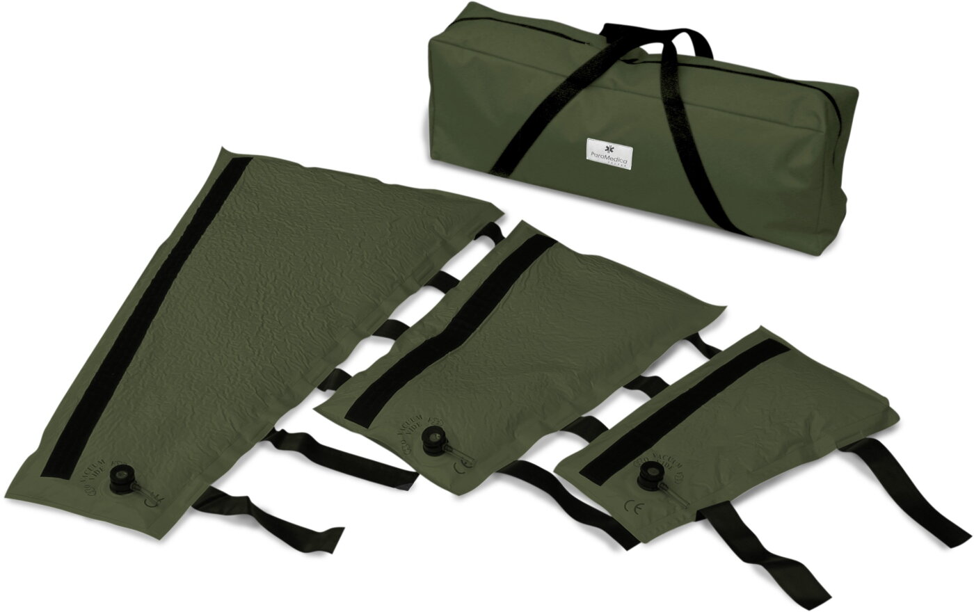 Zestaw 3 szyn podciśnieniowych różnej długości, do stabilizacji w obrębie dłoni, ręki i nogi.