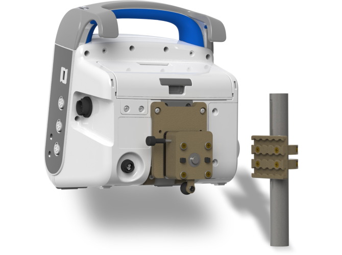 Uchwyt na rurę mocowany na stałe śrubami, a zaczep do monitora posiada szybkozłącze do błyskawicznego demontażu z uchwytu.