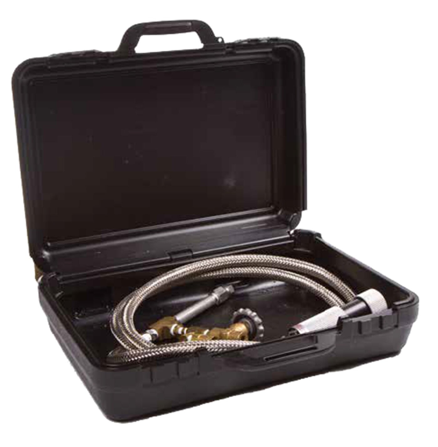 Zestaw składa się z zastawki bezpieczeństwa, ręcznej zastawki, łącznika w standardzie CRU-50 oraz przewodu o długości 25 lub 38 cm. Całość spakowana w walizce