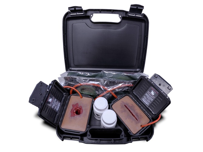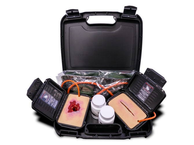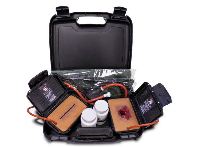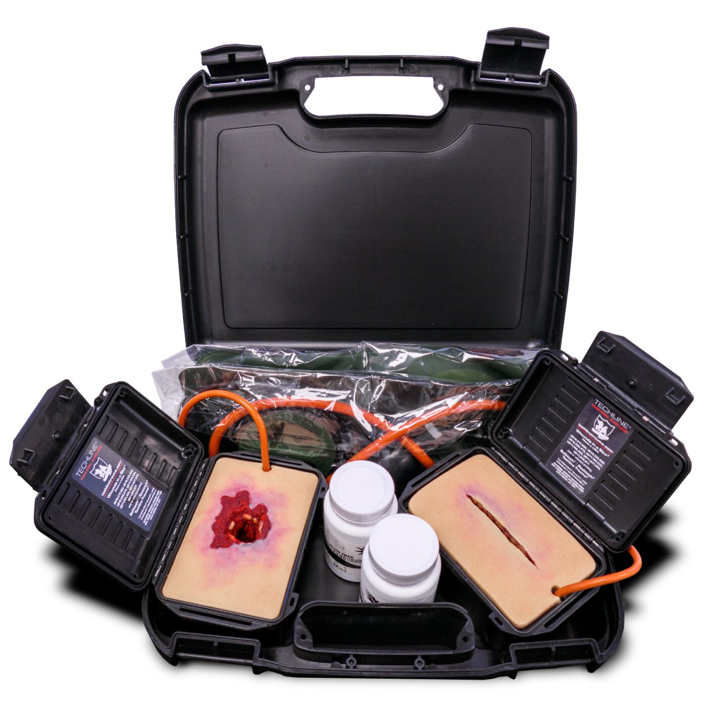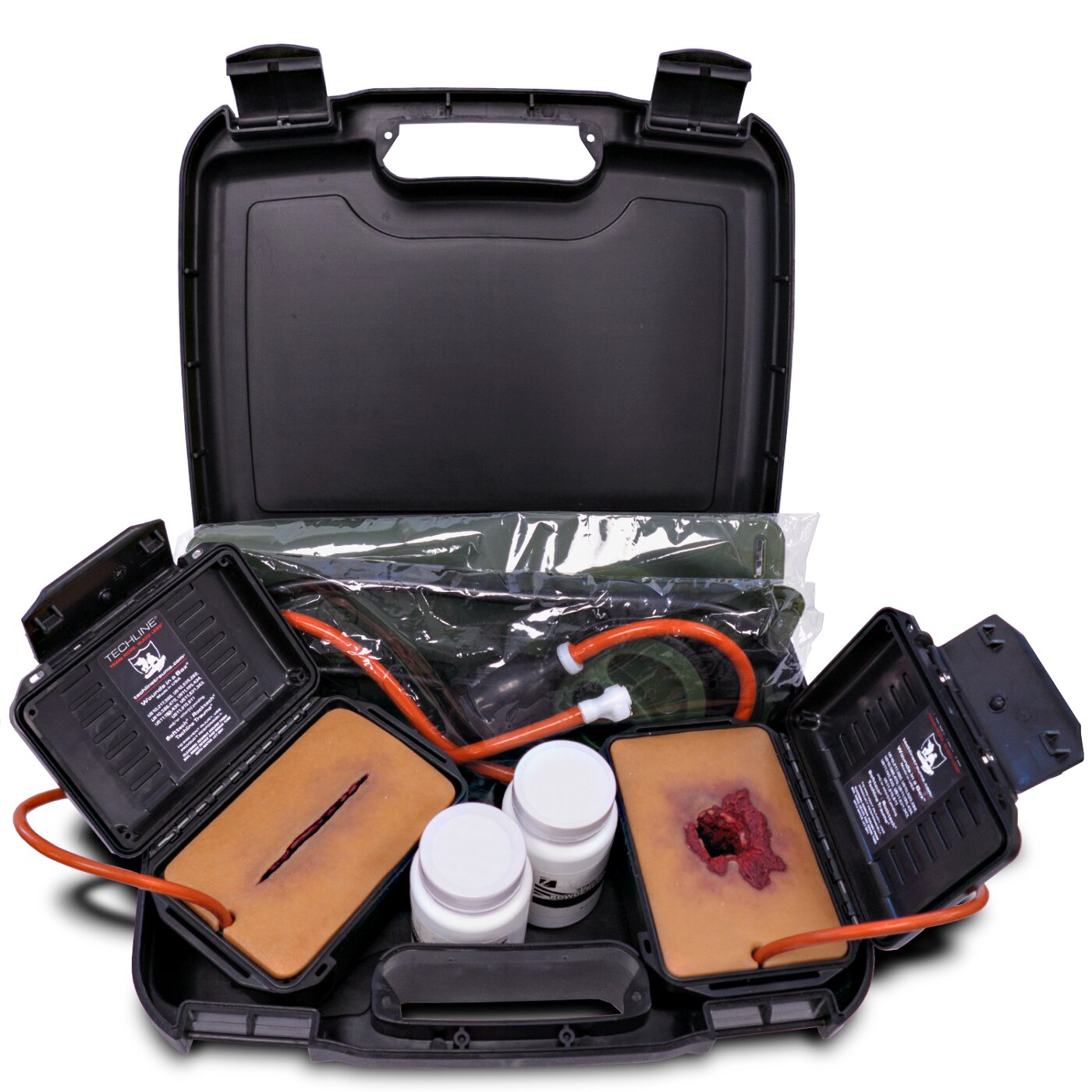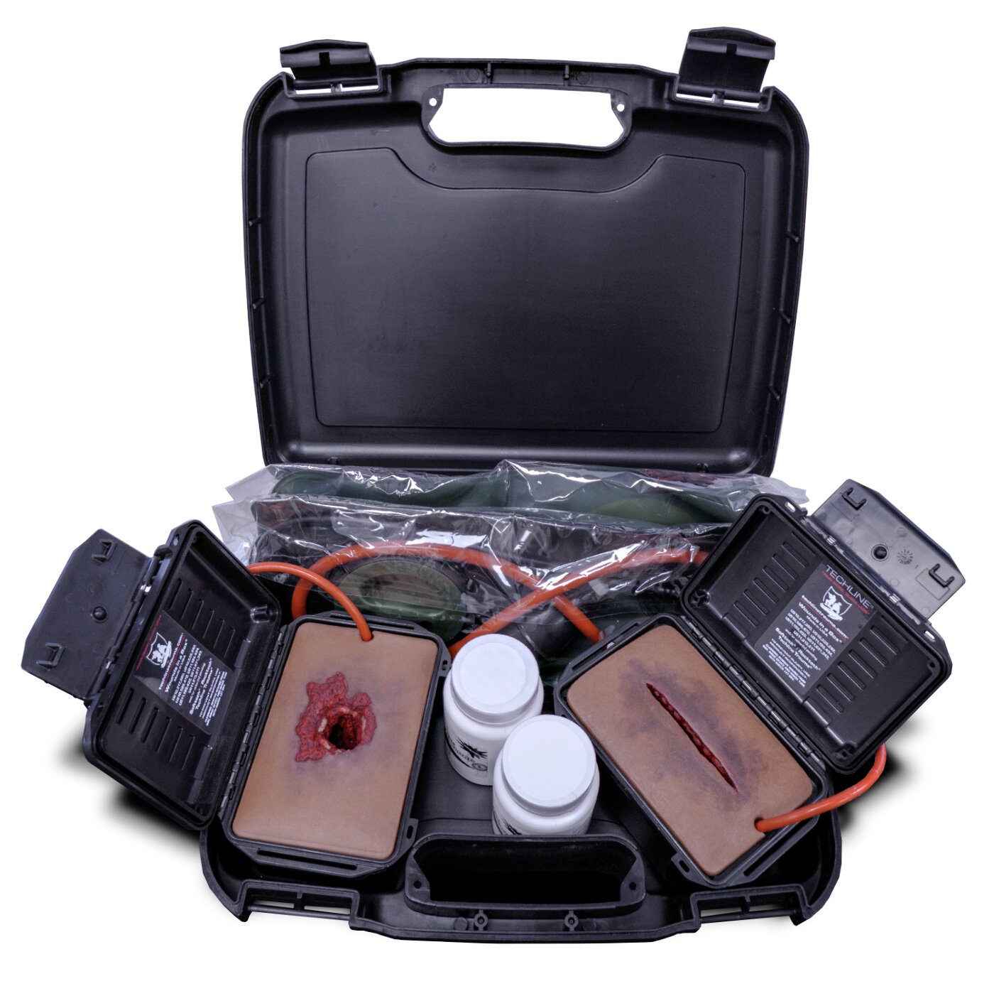 Zestaw treningowy Sim2 PTT-B08 to zaawansowany symulator, przeznaczony do realistycznych szkoleń z tamowania krwotoków i pakowania ran z kontrolą przepływu krwi.