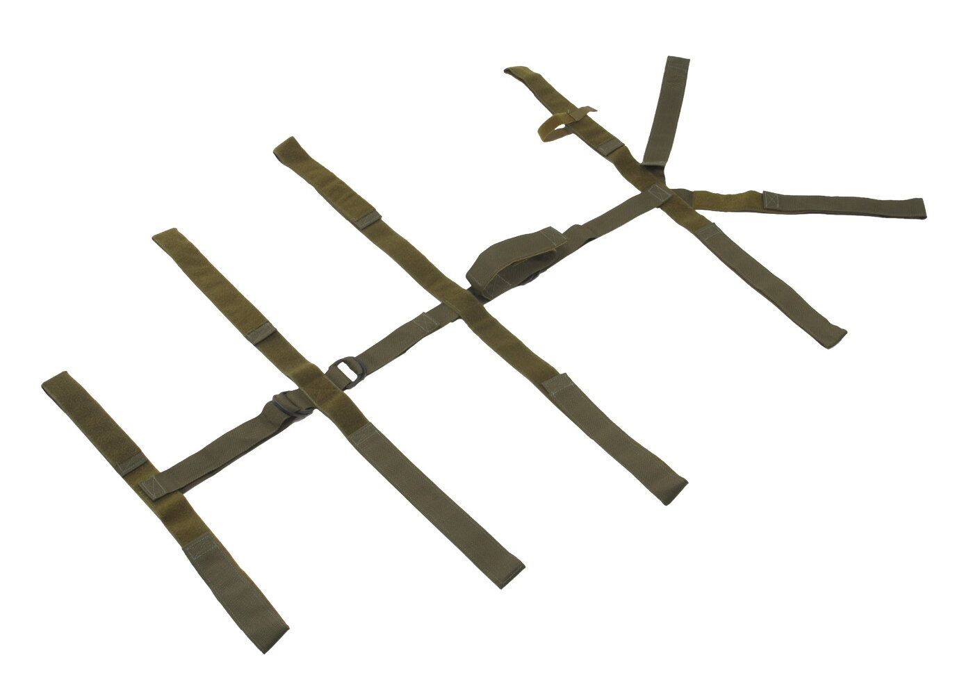 Jednoczęściowa uprząż przeznaczona do desek ortopedycznych i noszy podbierających. 10-punktowy pas posiada pełną regulację długości i zapewnia możliwość szybkiego zabezpieczenia poszkodowanego. Końcówki pasów z zaczepami typu rzep.